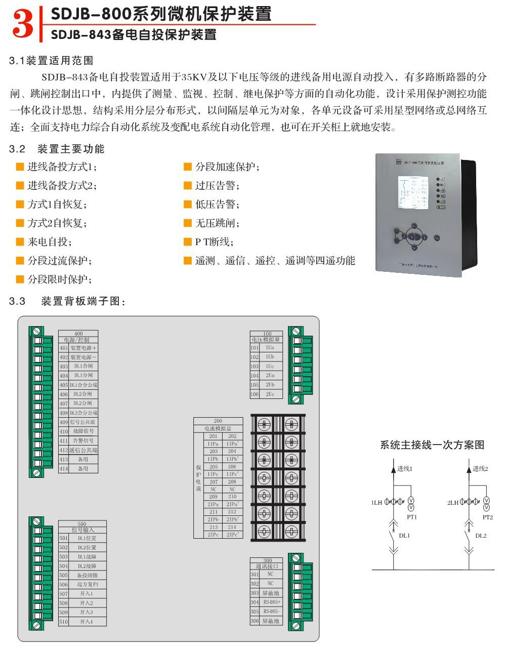 SDJB-842母聯(lián)備投保護(hù)裝置